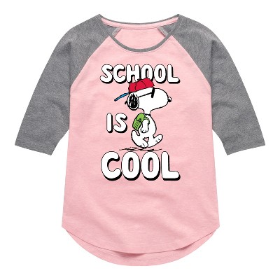 Girls' - Peanuts - School is Cool Shirt Tail Raglan Graphic T-shirt