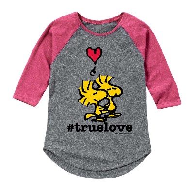 Girls' - Peanuts - True Love Woodstock Shirt Tail Raglan Graphic T-shirt