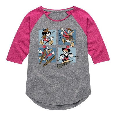 Girls' - Disney - Mickey And Donald Alpine Grid Shirt Tail Raglan Graphic T-shirt
