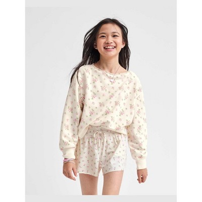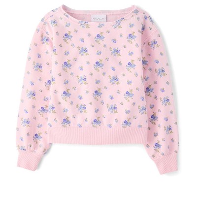 The Children's Place Girls Long Sleeve Floral Off Shoulder Fleece Sweatshirt