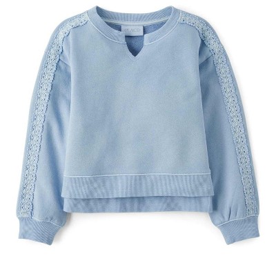 The Children's Place Girls Active Long Sleeve Garment Dyed Crochet Lace Premium Fleece Sweatshirt