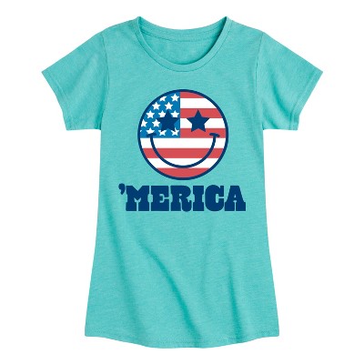 Girls' - Instant Message - Merica Smile Face Fitted Short Sleeve Graphic T-Shirt