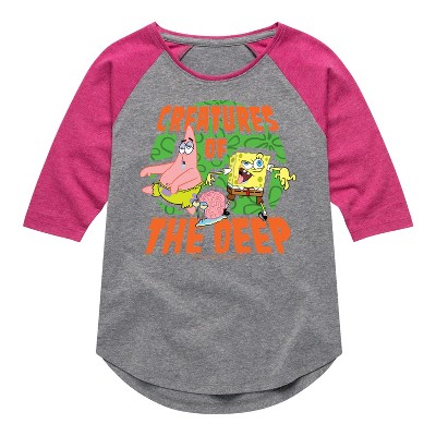 Girls' - SpongeBob SquarePants - Creatures Of The Deep Shirt Tail Raglan Graphic T-shirt