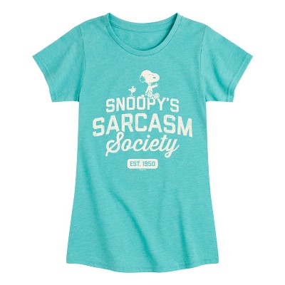 Girls' - Peanuts - Snoopy Sarcasm Society Fitted Short Sleeve Graphic T-Shirt