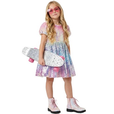 2Bunnies Girls' 4T-10yr Reversible Sequin Puff Sleeve Dress