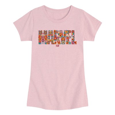Girls' - Marvel - Floral Logo Fitted Short Sleeve Graphic T-Shirt