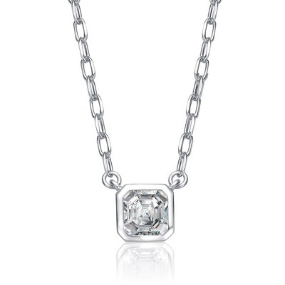 Asscher-Cut Stud Necklace with Clear Cubic Zirconia – A Classic and Elegant Design Featuring Sparkling Asscher-Cut Stones for Timeless Sophistication