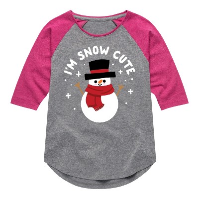 Girls' - Instant Message - I'm Snow Cute Christmas Shirt Tail Raglan Graphic T-shirt