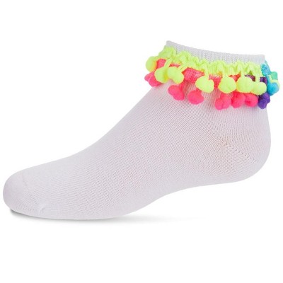 Memoi Neon Multi Pom-Pom Cotton Blend Girls Anklet Sock