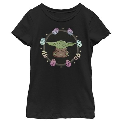 Girl's Star Wars The Mandalorian Grogu Easter Egging Around T-Shirt