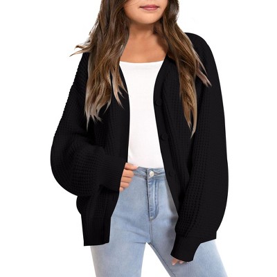 Girls Open Front Sweater Cardigan Long Sleeve Fall Winter Casual Kids Shirt Clothes Solid Thick Chunky Soft Knit Sweater Coat