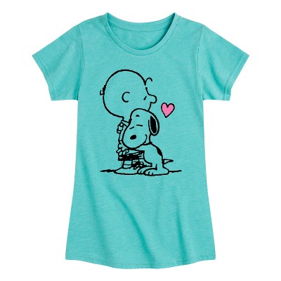 Girls' - Peanuts - Snoopy Charlie Hug Fitted Short Sleeve Graphic T-Shirt