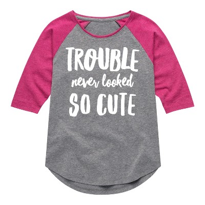 Girls' - Instant Message - Trouble Never Looked So Cute Shirt Tail Raglan Graphic T-shirt