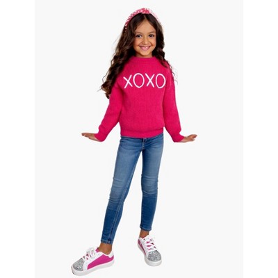 "XOXO" Embroidered Chunky Knit Sweater Mia Belle Girls