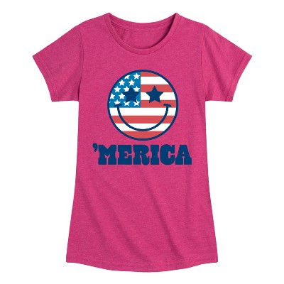 Girls' - Instant Message - Merica Smile Face Fitted Short Sleeve Graphic T-Shirt