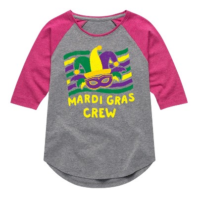Girls' - Instant Message - Mardi Gras Here For The Cake Fitted Short Sleeve Graphic T-Shirt