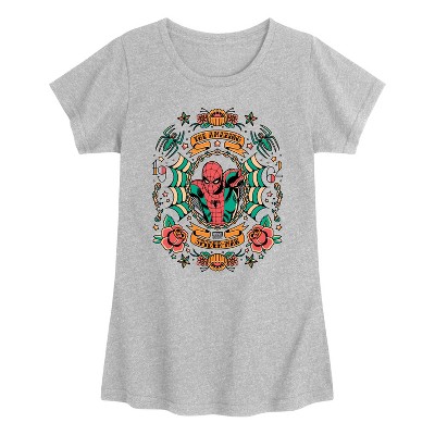 Girls' - Spider-Man - Floral Tats Fitted Short Sleeve Graphic T-Shirt