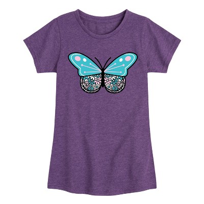 Girls' - Instant Message - Flower Butterfly Fitted Short Sleeve Graphic T-Shirt