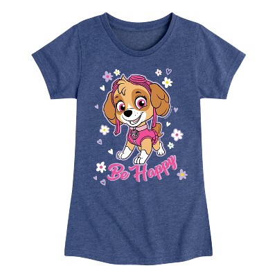 Girls' - Paw Patrol - Skye Be Happy with Flowers and Hearts Fitted Short Sleeve Graphic T-Shirt