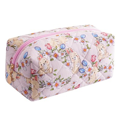 Narwey Cute Floral Makeup Bag Small Cotton Quilted Cosmetic Bag, Aesthetic Essential Bag Emergency Bag Gift (Yellow Rabbit)