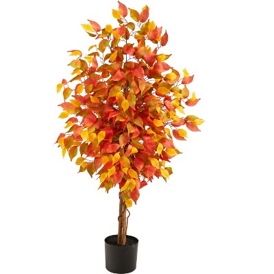 Nearly Natural 4-ft Autumn Ficus Artificial Fall Tree