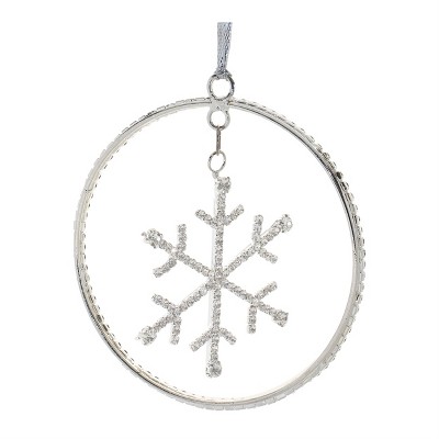 Snowflake Disc Christmas Ornaments Metal with Glass Beads Tree Décor-4" by Melrose