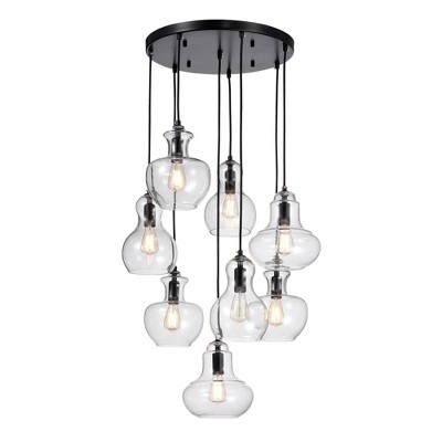 Warehouse Of Tiffany 27" x 27" x 14" 8-Light Beveen Pendant Black : ETL Listed, Glass Shades