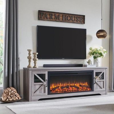 Farmhouse TV Stand for TVs up to 70" with Electric Fireplace, Storage Cabinets & Cable Management - Festivo