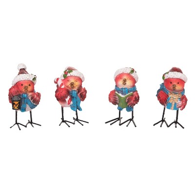 Transpac Small Resin Glitter Wreath Bird Figurines Set of 4 for Christmas Home Decor Tabletop Mantel Indoor Gifts