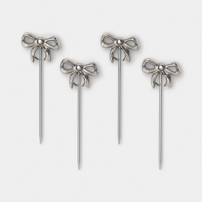 4pk Bow Cocktail Picks Silver - Threshold™