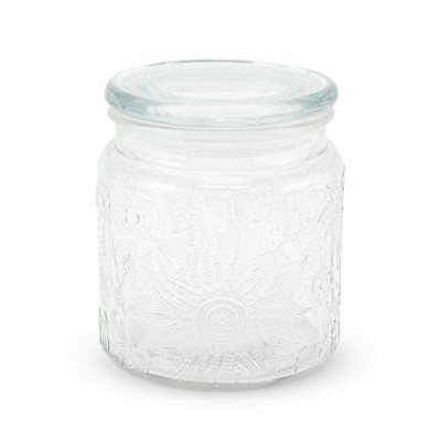 Unique Bargains 16.91oz Round Flower Pattern Decorative Glass Jar with Lid Clear 1 Pc