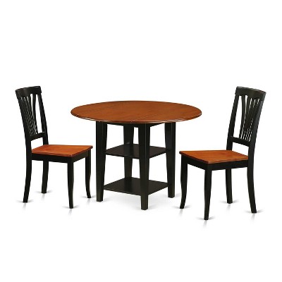 Vintage 3 Piece Dinette Set - Round Table & 2 Chairs - Black Cherry Finish - Home Kitchen Dining Room