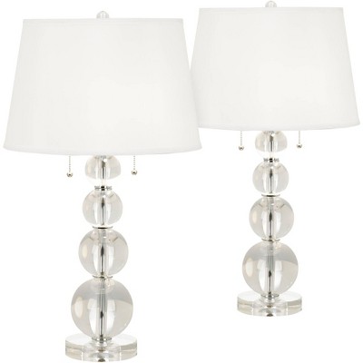 Vienna Full Spectrum Modern Table Lamps 26.5" High Set of 2 Stacked Crystal Spheres Glass White Drum Shade for Living Room Family Bedroom