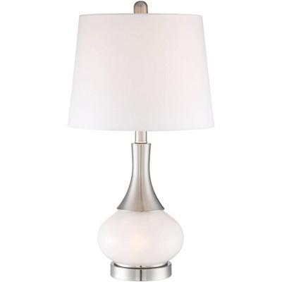 360 Lighting Serrena Modern Accent Table Lamp 23" High White Glass Brushed Nickel Metal with Nightlight Drum Shade for Bedroom Living Room House Home