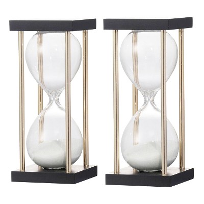 Gulches Spellman White Square Glass Metal MDF 3 in Decorative Hourglass Set of 2
