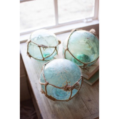 Recycled Glass Float 10"H – Blue Jute-Wrapped Decorative Accent, Set of 2 by Kalalou