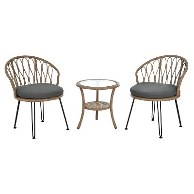 Dexmalle Patio Rustic Rattan Chairs with Glass Round Table Sets