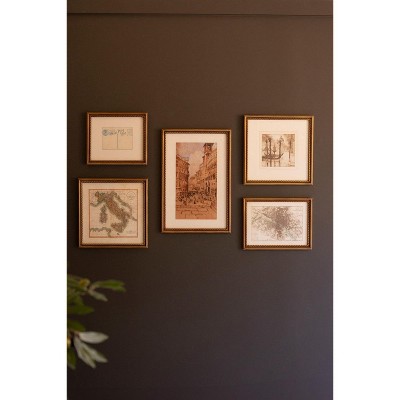 Framed European Gallery Wall Prints Set of 5 – Vintage Wall Art – 23.5" Tall by Kalalou