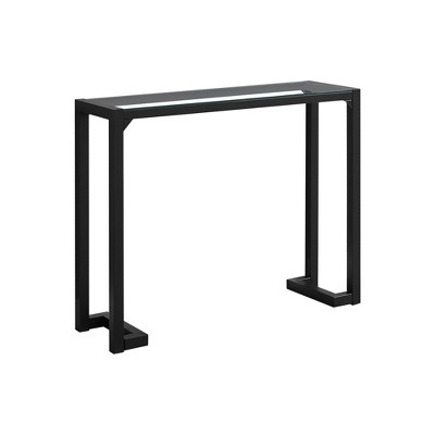 Clear Glass Console Table with Black Metal Frame, Modern Accent Table