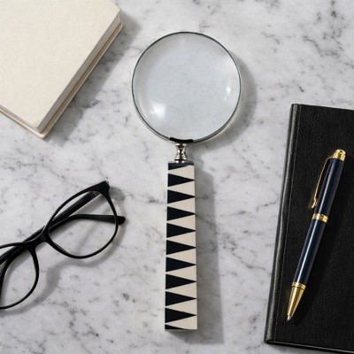 Decorative Resin Magnifying Glass in Triangular Design Handle Object - Sculptural Figurine Accent Ideal for Home Decoration - 10", White & Blue