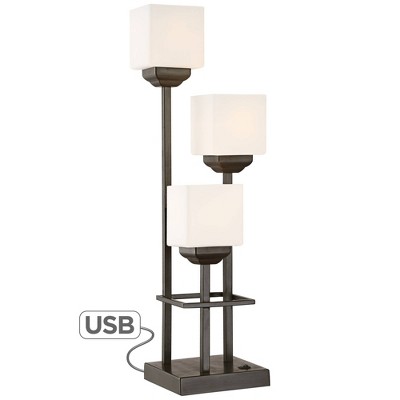 Franklin Iron Works Modern Console Table Lamp 29 1/2" Tall with USB Charging Port Bronze Metal White Glass Square Shade for Bedroom Living Room House