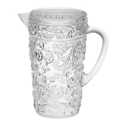 Gulches 3 Quarts Palm Tree Design Unbreakable Plastic Water Pitcher - BPA Free, with Lid & Spout, Ideal for Drinks & Juices