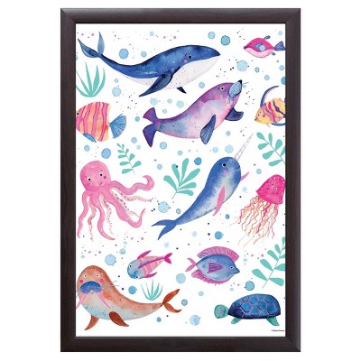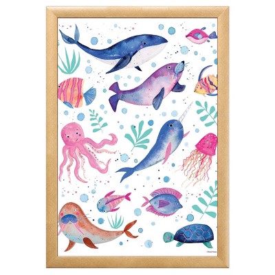 12" x 16" Cute and Quirky Nautical Animals Framed Wall Art, Contemporary Home Decor for Baby or Child's Room, Glass Facing and Hanging Hardware