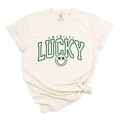 S.W.Smiley Lucky Varsity Glitter - Women's Garment Dyed Graphic T-Shirt