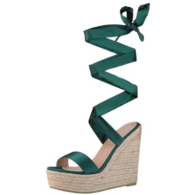 Allegra K Women's Lace Straps Espadrille Platform Slide Wedge Sandals