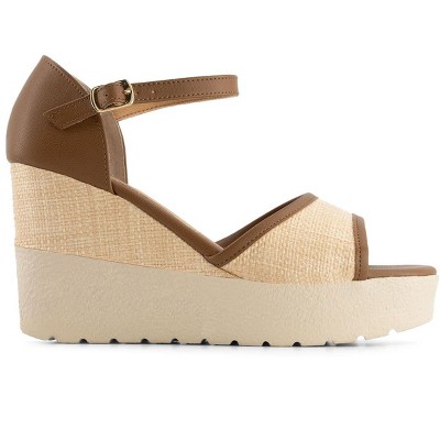 Allegra K Women's Slingback Buckle Ankle Strap Wood Platform Wedge Sandals