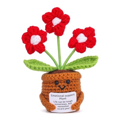 REGALWOVEN Handmade Crochet Potted Plant, Cute Knitted Artificial Flowers