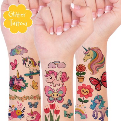 Wrapables Waterproof Glitter Temporary Tattoos, Birthday Party Favors and Supplies, Goodie Bag Fillers, 20 Sheets Butterflies and Unicorns