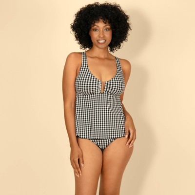 Black Double-Cinch Tankini Top