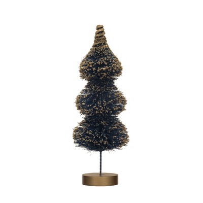Storied Home Sisal Bottle Brush Tree with Gold Glitter and Wood Base, Blue